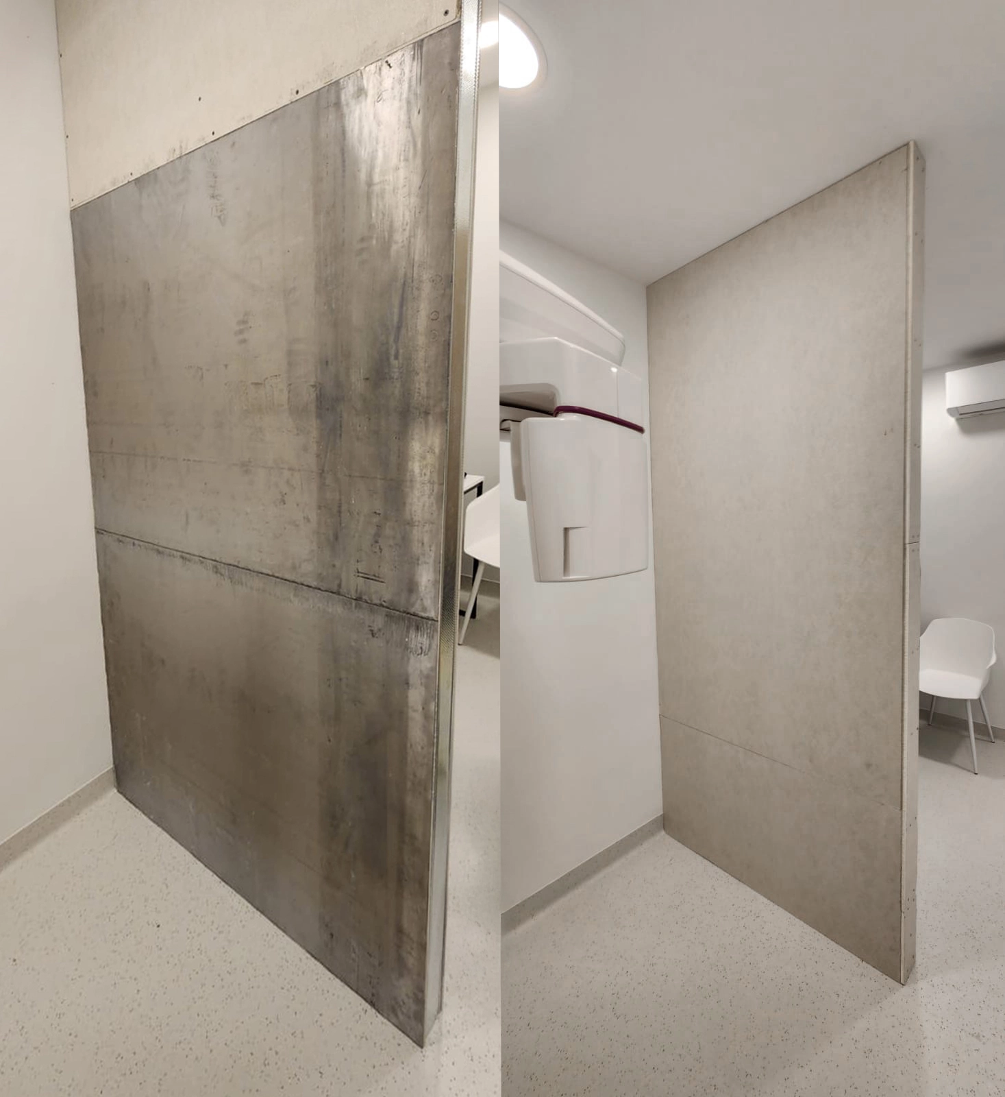 W ramach realizacji produkujemy i montujemy również systemy przesuwne, specjalistyczne drzwi i okna RTG, a także kompletne wyposażenie pracowni – w tym parawany ochronne, zabudowy technologiczne, osłony przepustów oraz inne elementy dostosowane do specyfiki danego projektu.