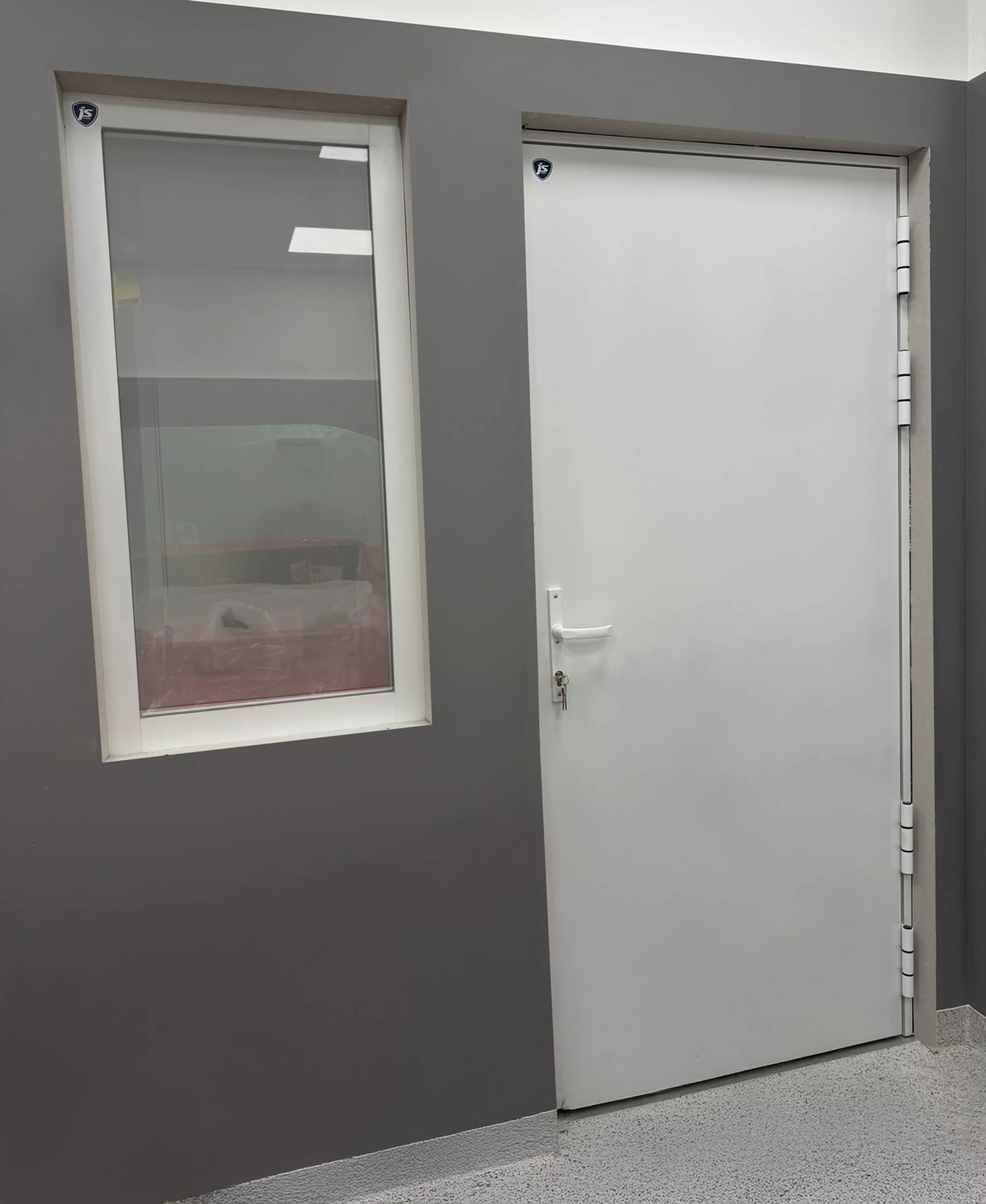 Wykonana ze stali nierdzewnej i szkła ołowiowego, śluza stanowi doskonałe rozwiązanie w gabinetach, klinikach i szpitalach. Konstrukcja może być wyposażona w zamek z kontrolą dostępu, zawiasy bezpieczeństwa i uszczelnienia ołowiowe.